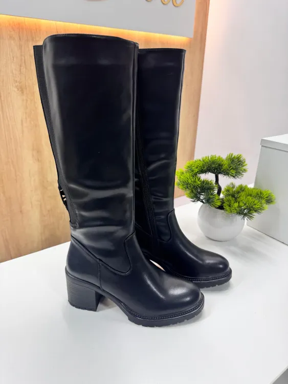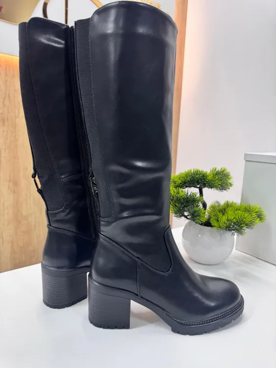 Cizme Lungi Negre Elegante cu Toc Gros G2571