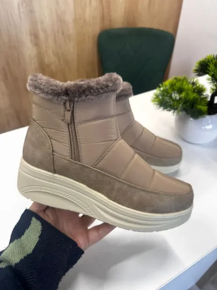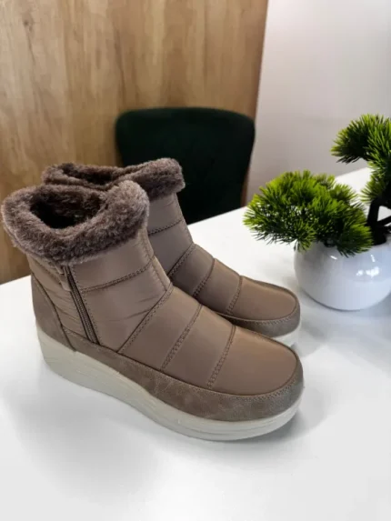 Cizme Damă Bej cu Blăni, Fermoar PlatformăA989