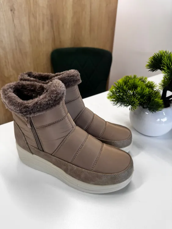 Botine Taupe cu toc mic si Bareta Decorativa O6
